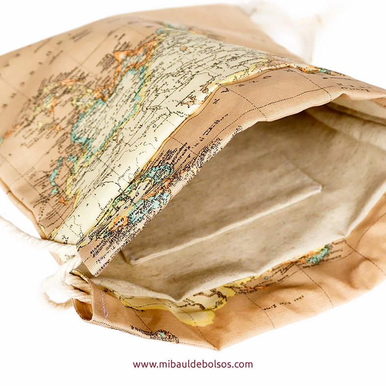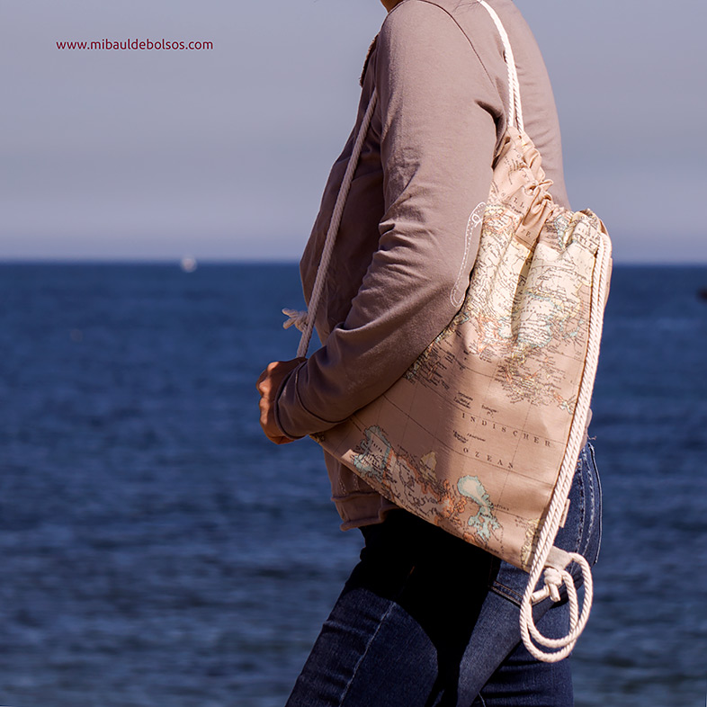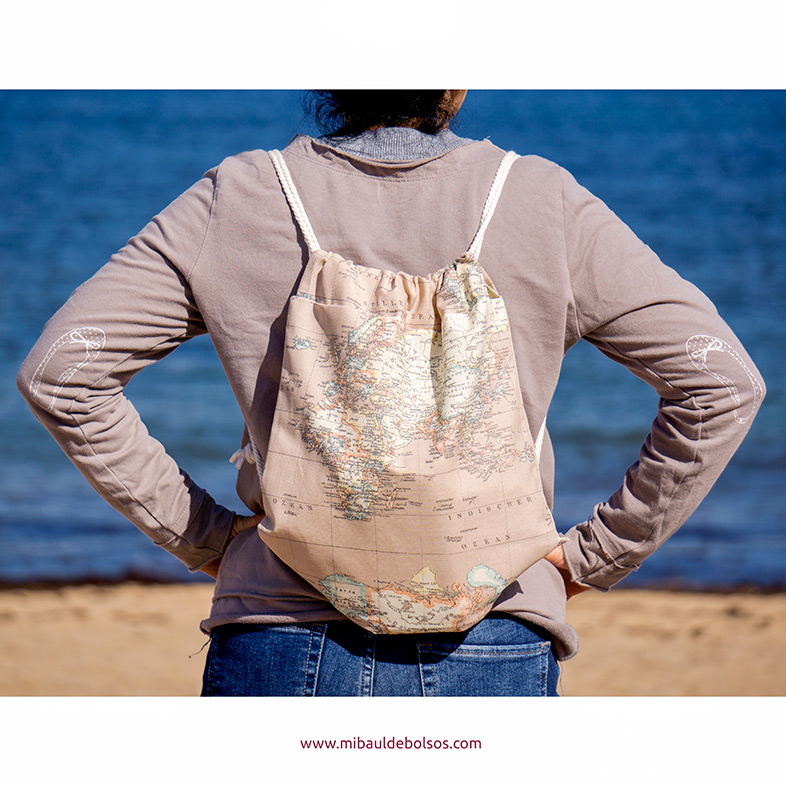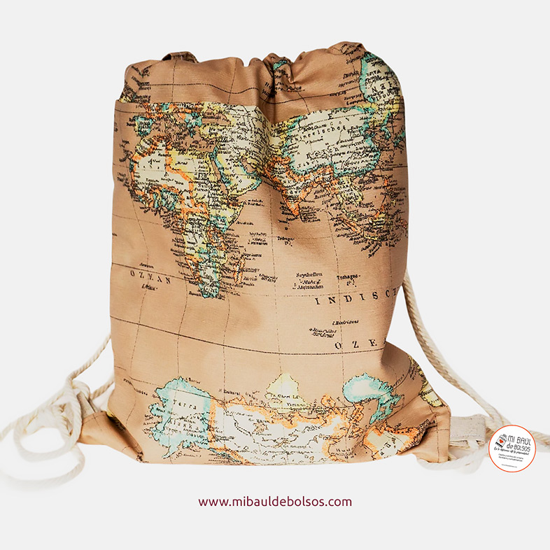 PLUS: Esta mochila pertenece a la Colección Mapamundi, que puedes complementar con neceser, monedero, etc. confeccionados en la misma tela (*sujeto a disponibilidad de materiales).